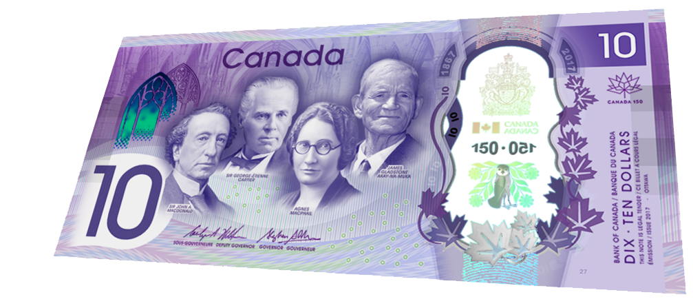 - Polymer Construction: Polymer is the most secure material used in modern currency production. Once a denomination is issued in polymer, financial institutions actively work to withdraw paper notes from circulation. Our polymer counterfeit Canadian Dollar bills are designed to blend seamlessly into the economy.